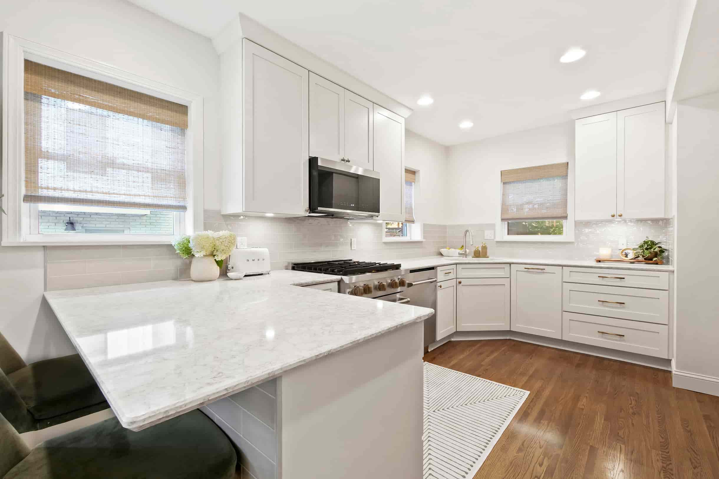 | Quartz (Engineered Stone) | Cambria (preferred brand) Zodiaq Silestone Caesarstone Viatera, and more. | $$-$$$ | 10 years - Lifetime | 4 | 5 | 5 |